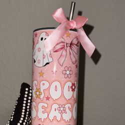 Pink Spooky Season Coquette 20oz tumbler $25Houston, TX