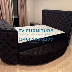 Brand New! Black Velvet Round Bed Frame! Same Day Delivery 3 Monthly Payments $54Houston, TX