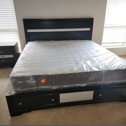 New Black Queen Bed Frame W Mattress - Bluetooth And Power Outlets $699Houston, TX