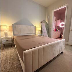 King Size White Velvet Bed Without Mattress $600Houston, TX