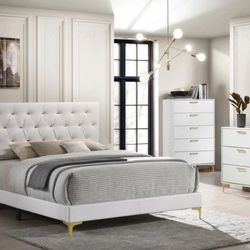Kendall White/Gold Upholstered Panel Bedroom Set$579Houston, TX