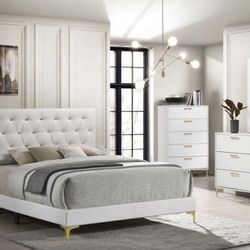 Kendall White/Gold Upholstered Panel Bedroom Set$579Houston, TX