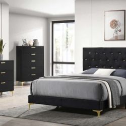 Kendall Black/Gold Upholstered Panel Bedroom Set$579Houston, TX