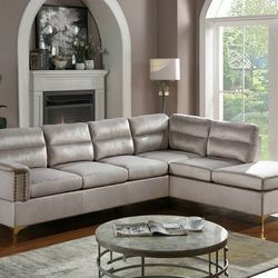 Vogue Velvet Sectional Sofa Silver