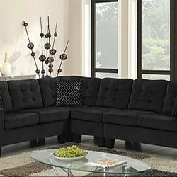 Mio Sectional Sofa with Ottoman Black Fabric
