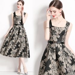 Runway Fashion Black Jacquard Belted Retro Style Women Party Dress, Prom Vestidos$42Houston, TX