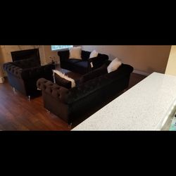3 PIECE BLACK VELVET LIVING ROOM FURNITURE SET!!!$1,100Houston, TX
