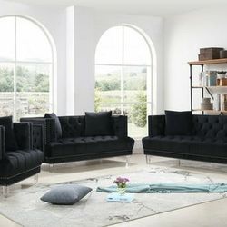 Lucas 3pc Black Velvet Living Room Set