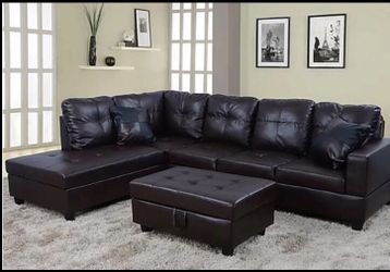 BLACK LEATHER SECTIONAL SOFA WITH OTTOMAN INCLUDED NEW$650Houston, TX