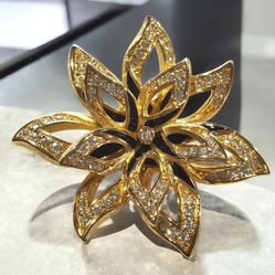 Vintage Gold Black Enamel Crystal Flower Brooch$498Houston, TX