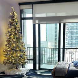9ft Flocked Christmas Tree – Pre-Lit & Decorated$100Houston, TX