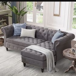 New Chesterfield Sofa with Rolled Arms, Classic Button Tufted L Shaped Couch with Nailhead Trim, Upholstered Chesterfield Couches with Gourd Wood$240Houston, TX