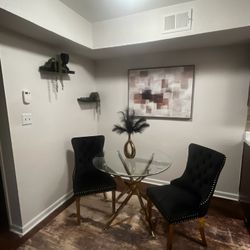 Dining room with 6 black chairs, white table. $750Houston, TX