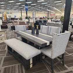 Brand New PAIGE 6-PK DINETTE SET Gray WITH BENCH 63Lx35W$399Houston, TX