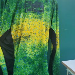 Used PELAGIC Men's Exo-Tech Hooded Fishing Shirt, Long Sleeve, UPF 50+ Protection, Integrated Face Mask green yellow large size h7clf 30s 10x9x1 14oz$30Houston, TX