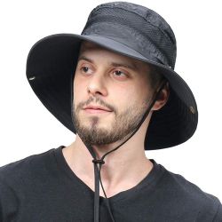 CAMOLAND Breathable Wide Brim Boonie Hat Outdoor UPF 50+ Sun Protection Mesh Safari Cap for Travel Fishing