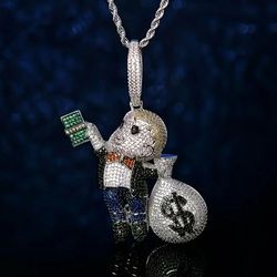 Exquisite Micro Pave 14K White Gold-Plated Multicolor Cubic Zirconia Richie Rich Pendant With 24"Rope Chain Necklace $24Houston, TX