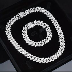 2-Pcs Iced Out 14K White Gold-Plated Cubic Zirconia 18"/20"/22"/24" Cuban Chain Necklace & Bracelet Set $25Houston, TX