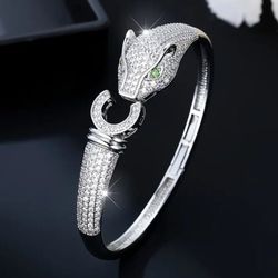 Exquisite Micro Pave 14K White Gold-Plated Grren Eye Cubic Zirconia Leopard Head Bracelet $20Houston, TX