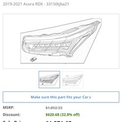 2019-2021 Acura RDX OEM Passenger Side Headlight $800Houston, TX