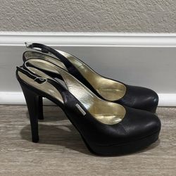 GF Ferre Black Leather Slingback Platform Heels Round Toe$30Houston, TX