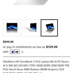 Hp Omnibook 3 15.6” Ryzen AI 5-340$800Houston, TX