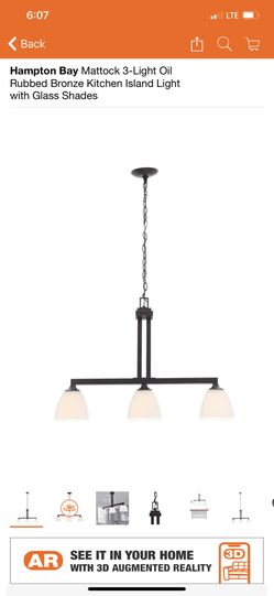 Hampton Bay Mattock 3-Light Oil Rubbed Bronze Kitchen Island Light with Glass Shades$99Houston, TX