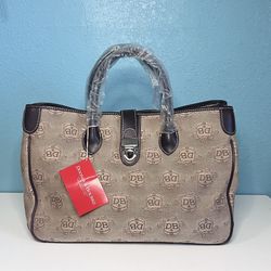 Dooney & Bourke Canvas Logo Purse Tote Dark Brown Canvas DL50C W8 Detachable Strap $99Channelview, TX