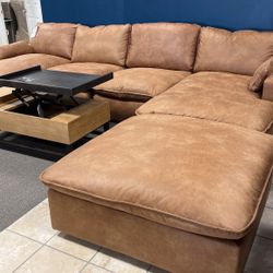 Extra Large Faux Leather Microfiber Tan Sectional & Ottoman$2,999Houston, TX