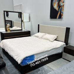 Brand New/ Dark Brown Upholstered Bedroom Set/Dresser, Mirror, NightStand, Bed// Mattress Sold Separately $2,119Houston, TX