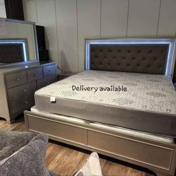 Gray Led Bedroom Set, Dresser, Mirror, NightStand, Bed// Mattress Sold Separately $869Houston, TX