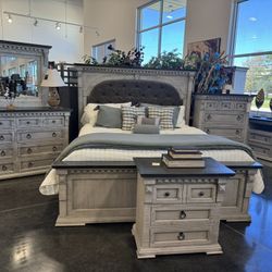 6 PIECE KING OR QUEEN BEDROOM SET Includes: Headboard, Rails, Storage footboard, Dresser, Mirror, Nightstand.$1,698Spring, TX