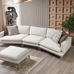 Dylan Ivory Linen 3-Piece Curved 126" Sectional with Ottoman (sofa Couch Options $1,599Houston, TX