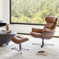 CHITA Genuine Leather Reclining Swivel Chair with Adjustable Headrest and Ottoman for Living Room, Saddle$300Houston, TX