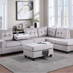 $599 New In Box Grey Sectional With Ottoman Delivered Today! $599Houston, TX