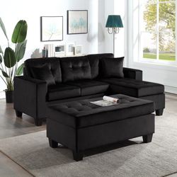 Black Velvet Reversible Sectional And Ottoman $799Houston, TX