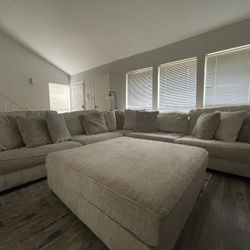 Sectional White Linen W Ottoman Sale $649Houston, TX