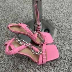 NWT ZARA SATIN EFFECT HIGH HEEL SANDALS Pink$30Houston, TX