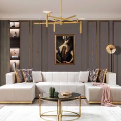 Elisha 140” Ivory Velvet Double Chaise Sectional Sofa | Oversized Glam Modern Couch | Tufted Luxury Living Room Furniture$1,820Houston, TX