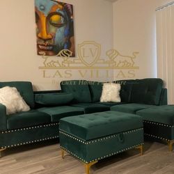 Brand New// Gray Velvet Sofa Chaise, Seccional, Couch, Sectional// Delivery Available $1,019Houston, TX