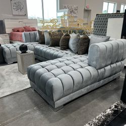 New/_ Gray Velvet Double Chaise Sectional, Seccional, Couch $2,089Spring, TX