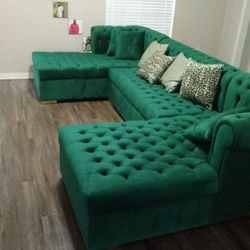 Green Velvet Double Chaise Sectional $2,089Houston, TX