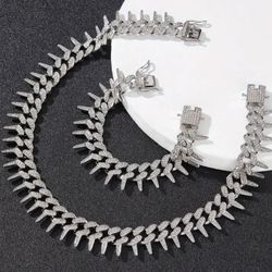 2-Pcs FULLY ICED 14K White Gold Plated Cubic Zirconia Spikes Thron 20 Inches Necklace & Bracelet Set $25Houston, TX