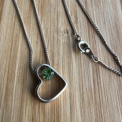 Elegant Silver Tone Heart Pendant Necklace with Green Crystal – 18” Chain$35Houston, TX