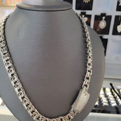 925 Sterling Silver Chino Link Closed Chain 22" Solid Chain 925 Plata Tejido Chino Link Cerrado Cadena Solida $800South Houston, TX