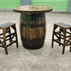 Bourbon Whiskey Barrel Pub Table and Pair of Stools Special!!!