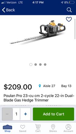 Poulan pro 23-cu cm 2-cycle 22-in dual-blade gas hedge trimmer$170Pasadena, TX