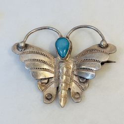 Vintage Sterling Silver Navajo Handmade Turquoise Butterfly Brooch Pin$45Houston, TX