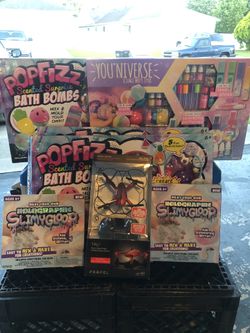 Pop fizz bath bombs 3x, You*Niverse set, slime gloop 2x and a mini drone.$80Houston, TX