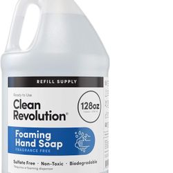 Clean Revolution Foaming Hand Soap Refill Supply, Gentle, Moisturizing & Eco-Friendly, Ready to Use Formula, Gluten Free, Unscented, Fragrance Free, 1$12Spring, TX